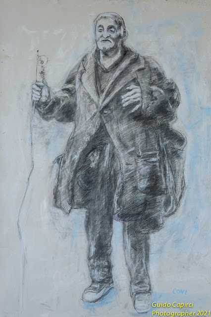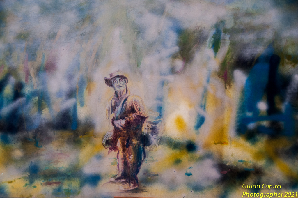 Pur conoscendolo da tempo, avevo potuto apprezzare solo scampoli della sua arte , alcuni “adagiati” sulle pareti della sua pasticceria e altri che avevano suscitato l’ammirazione anche dei partecipanti all’incontro di “Spazio Libero” dell’ottobre 2019 in cui , mentore Paolo PISANI, era stato sottolineato il valore artistico del personaggio COVI.