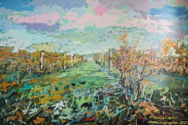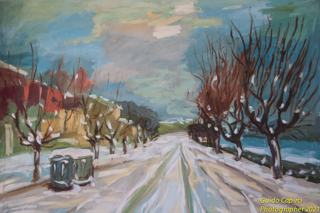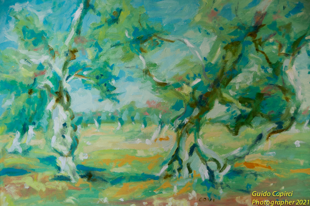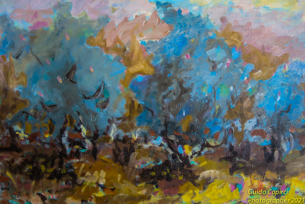 Tra i quadri paesaggistici che COVI ha interpretato alla sua maniera, ce ne è uno che , stimolando la mia fantasia, esemplifica in maniera più appropriata la definizione ,che egli stesso si è cucita addosso, di “pittore colorista figurativo tendente all’astratto fino all’informale”