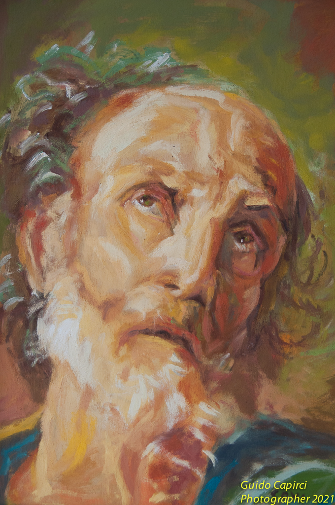 Ma la mia ammirazione per COVI è legata soprattutto alla ritrattistica, che dimostra di padroneggiare con ogni tecnica.Io plaudo alla sua capacità di cogliere i tratti del viso ma rimango veramente colpito dalla sensibilità con cui traduce l’espressione più autentica, più intima del soggetto, quasi fosse in diretta comunione con esso. E se questo è “studiato” nella rappresentazione dei Santi o delle Icone, appare strabiliante quando il soggetto è persona conosciuta o pubblica…