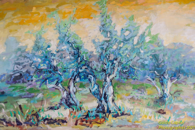 Ma i veri sacerdoti dei suoi quadri io li rivedo negli ulivi che consacrano, con quei rami nodosi e tortuosi, tutta la passione che egli prova per questo territorio che lui, calabrese, ha scelto e da cui è stato adottato.