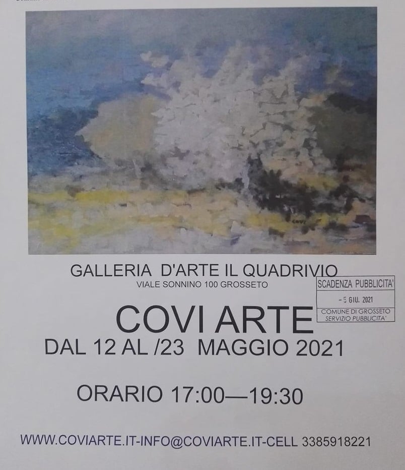 La mostra “COVI ARTE”, che richiama appunto il suo pseudonimo e che è aperta presso la Galleria d’Arte “IL QUADRIVIO” di Grosseto dal 12 al 23 maggio 2021 con orario 17-19.30 è caratterizzata da una tale abbondanza di opere che permette di conoscere l’ecletticità di questo pittore .